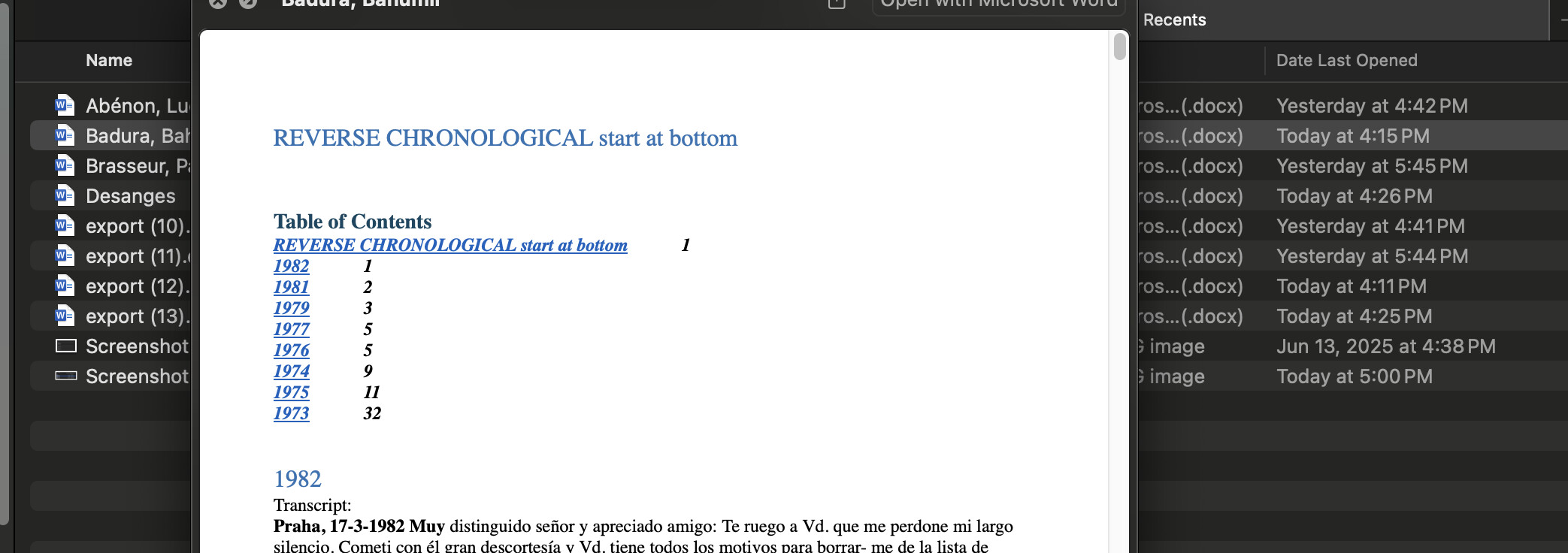 An idea for another feature you could add is that when you upload the images to LEO, there is no way to preview the images for mass transcription, so unless you know each image by the file name you don’t know which images to deselect (I am working with several hundred images at a time so perhaps this would not be widely a huge improvement), but I’m thinking about the Mac interface where you can press space on a file and see what is in the file you have selected. A potential issue with this would be that things are selected or not selected and so that could be confusing and so another way to tackle this as a feature if you wanted to add it, would be to make a preview on one half of the screen next to the list of files.