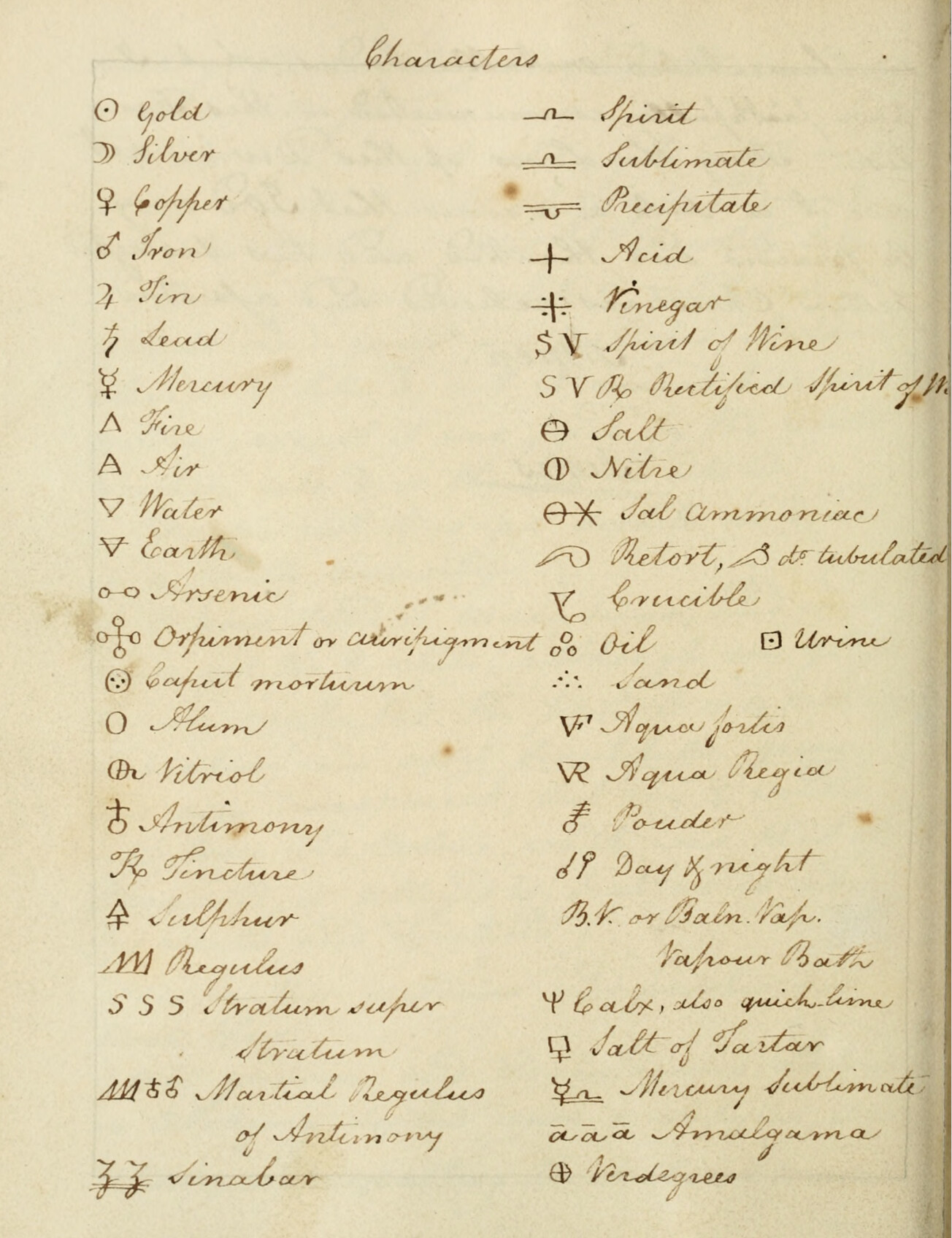 My question concerns how this would work in terms of user input. I could obviously correct Leo online, as we discussed earlier; but the ideal solution in this case (since almost everyone had their own unique set of symbols) would be to ask Leo to scan a chart with translations and learn from that. In this case, my alchemist conveniently included one (see below). Would this work? If so, I foresee a great marketing pitch for the dozens of people who work on alchemy and must go crazy with all the symbols…