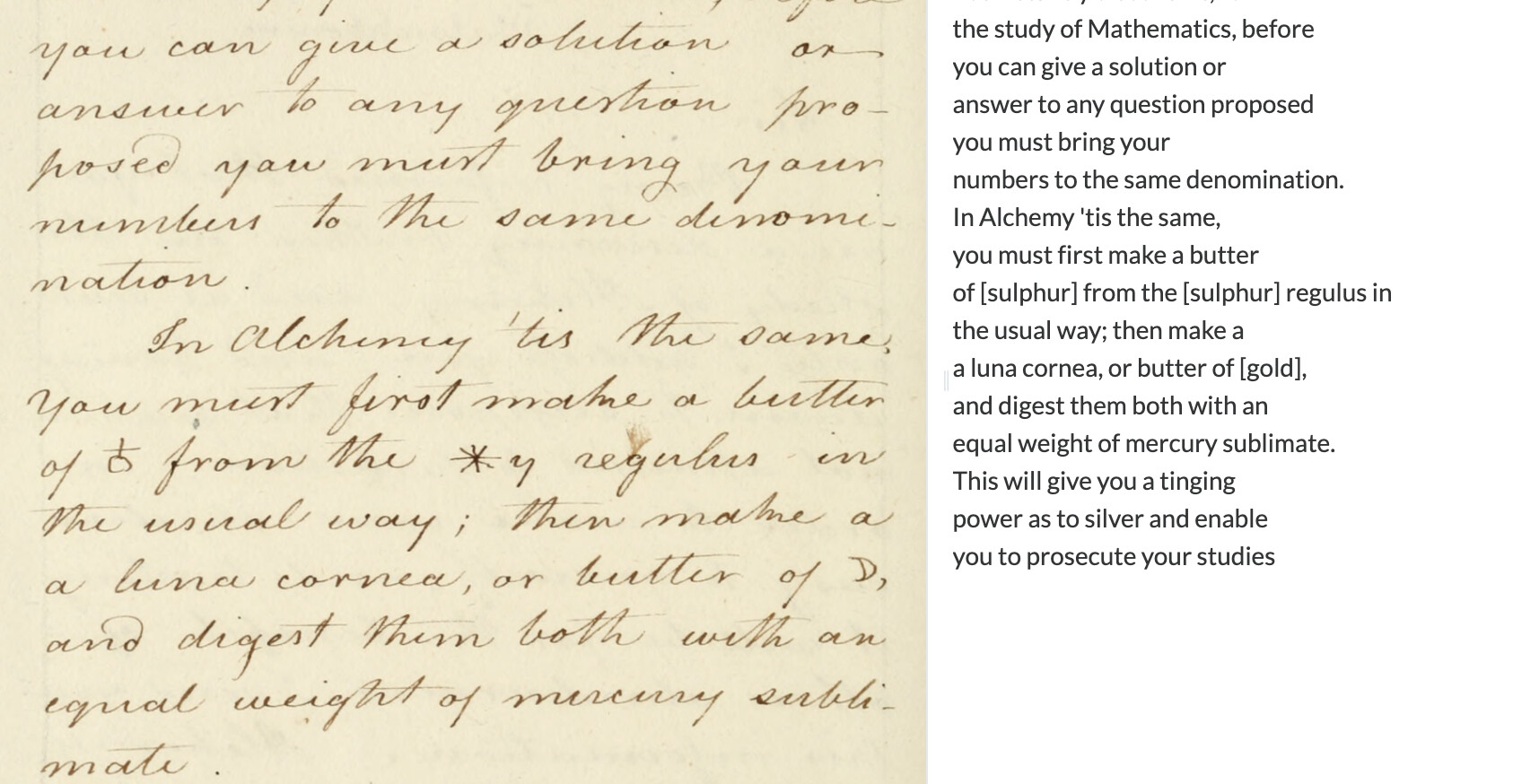 I just discovered a treasure trove of alchemical manuscripts from the early 19th century at the Getty (available on Hathitrust) and I’m starting to download and transcribe them. Of course, they are chock-full of alchemical symbols, which I assumed I would have to go back and correct after Leo did something unpredictable with them. What Leo has done (so far) is actually pretty interesting! He figured out they represented different chemicals, but went 0 for 3 in getting the chemicals right: sulphur instead of antimony/mercury and gold instead of silver. But it’s cool that he made the leap to chemicals!