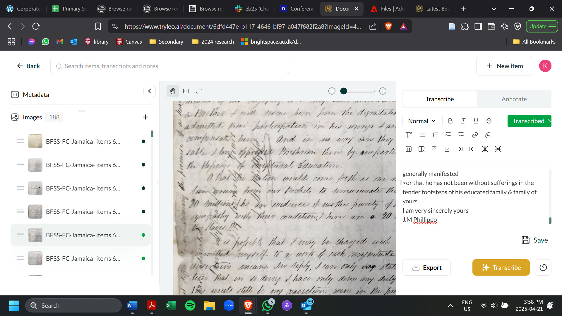 I’m not sure if this is more widespread, but on this letter the transcription was perfect until the signoff- it wrote “Yours Truly, H.H. Stephens” rather than “I am very sincerely yours” Phillippo.