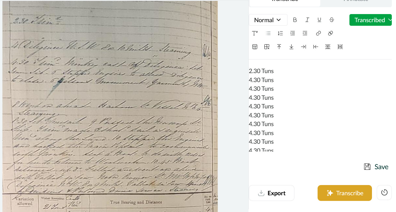I knew going into the beta test that Leo was a little finnicky when it comes to tables; it can get easily overwhelmed and start hallucinating when a document like a ship’s muster roll includes too many “table” elements. I therefore haven’t used Leo to transcribe any of my muster rolls after it failed my initial attempts.