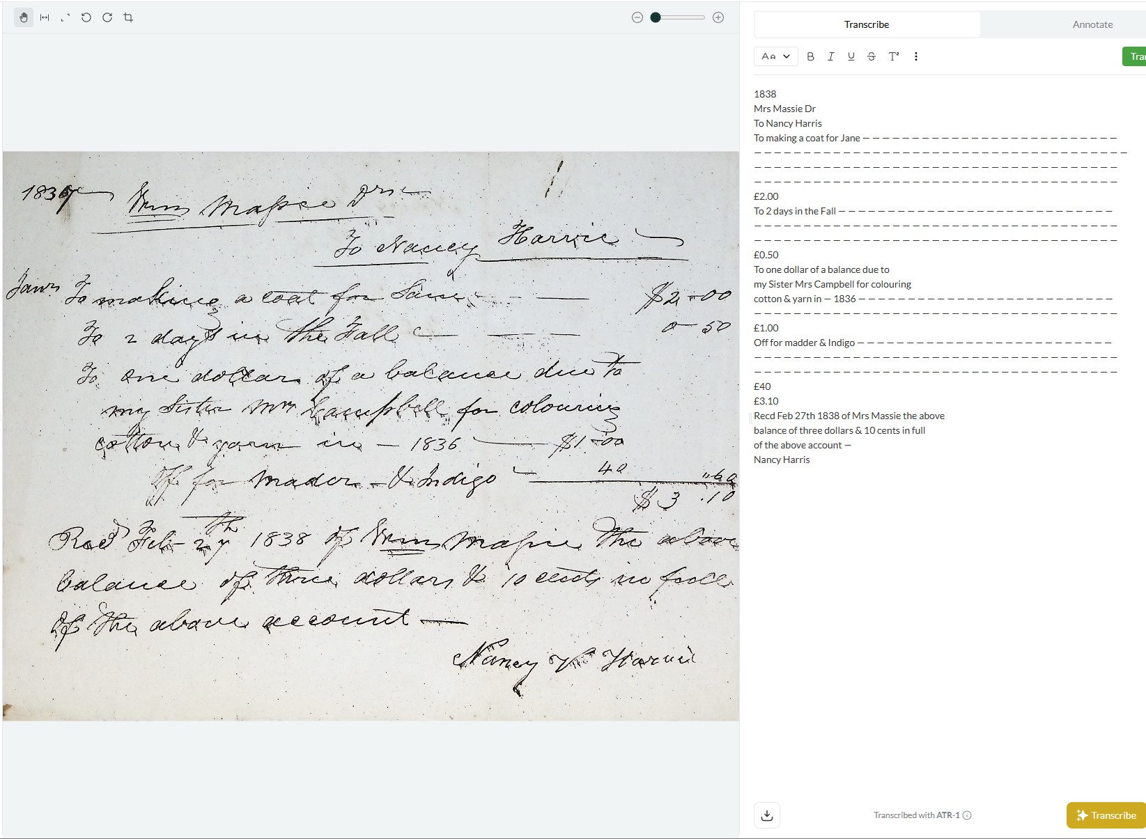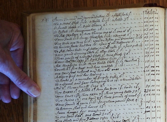 Two major mistakes. On a pge that starts with a chart at the top (it’s a probate inventory, with the name of an item, a row of dots, and then a value, in pounds, shilling and pence to the right, with a vertical line dividing those columns. Leo gave me the first line, and then a page of two of dashed lines, no content.