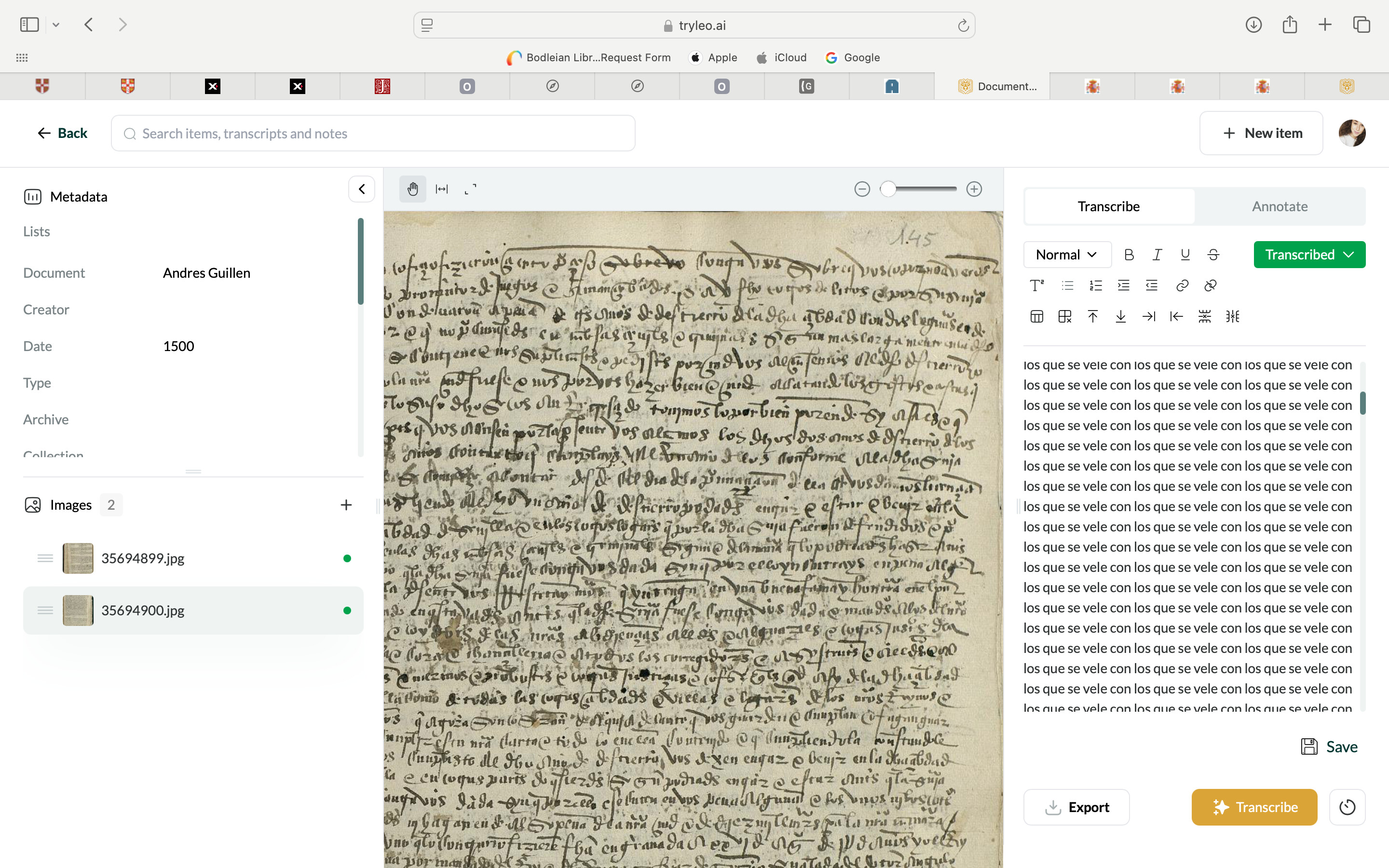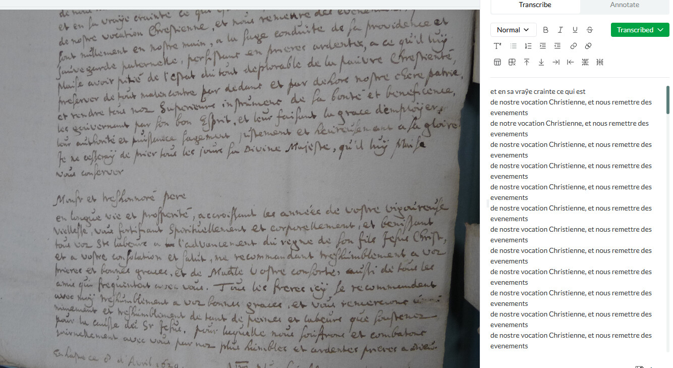 Had a repetition today in a transcript - seems to be because there is a darker patch on the page and once Leo hit that darker patch it just didn’t transcribe the rest of the document, despite the writing and photo being quite clear.