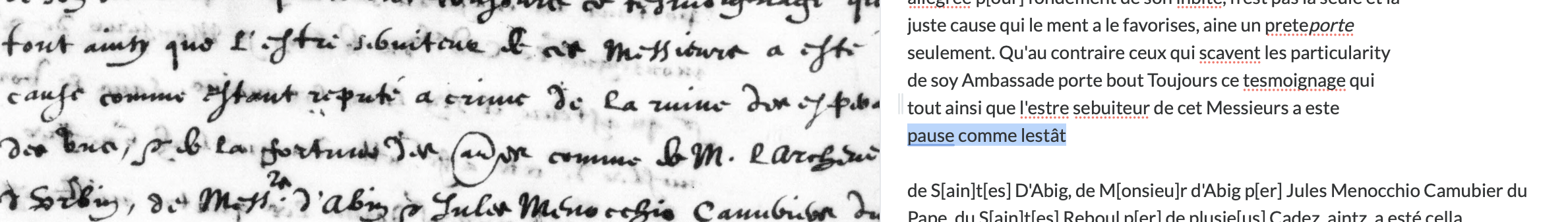 Another example, this time I underlined to show you. I guess it misread the ampersands and just skipped to the next one. (Glad I noticed because the reference to the ‘nation François’ is exactly what I’m searching these documents for!)