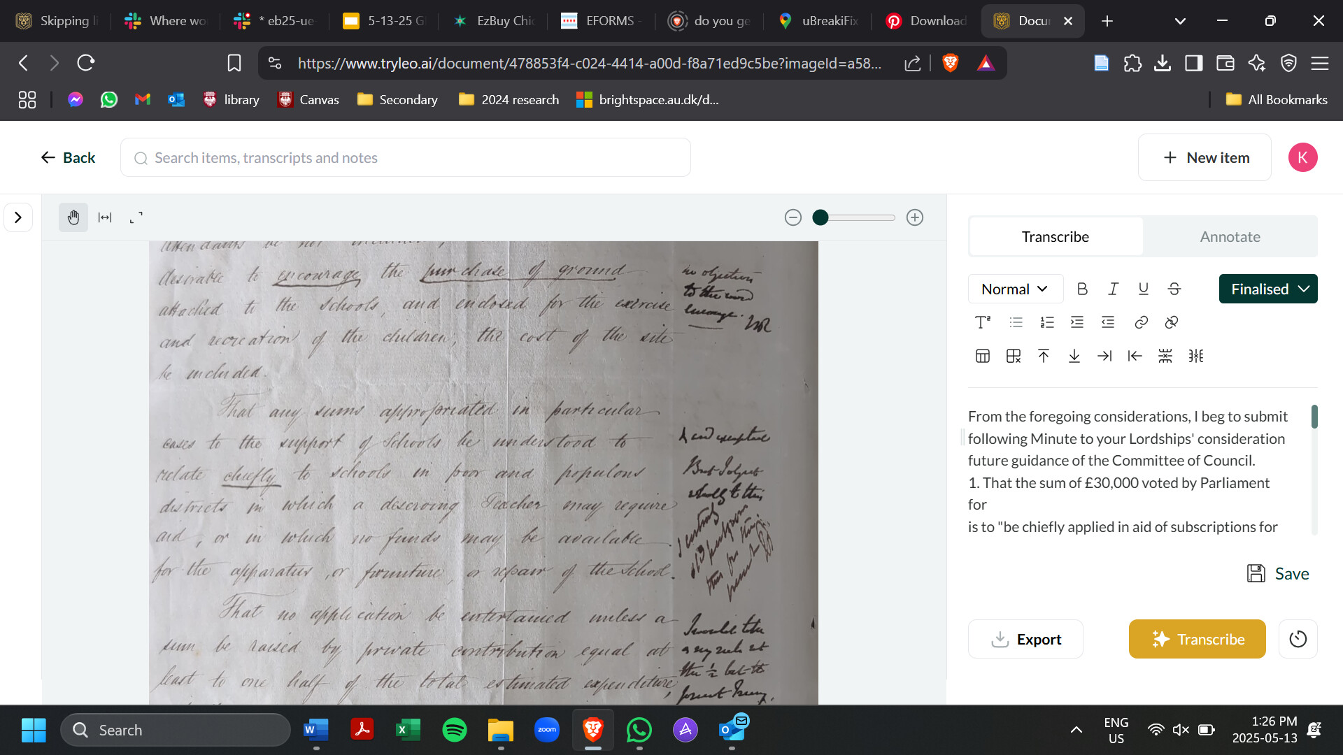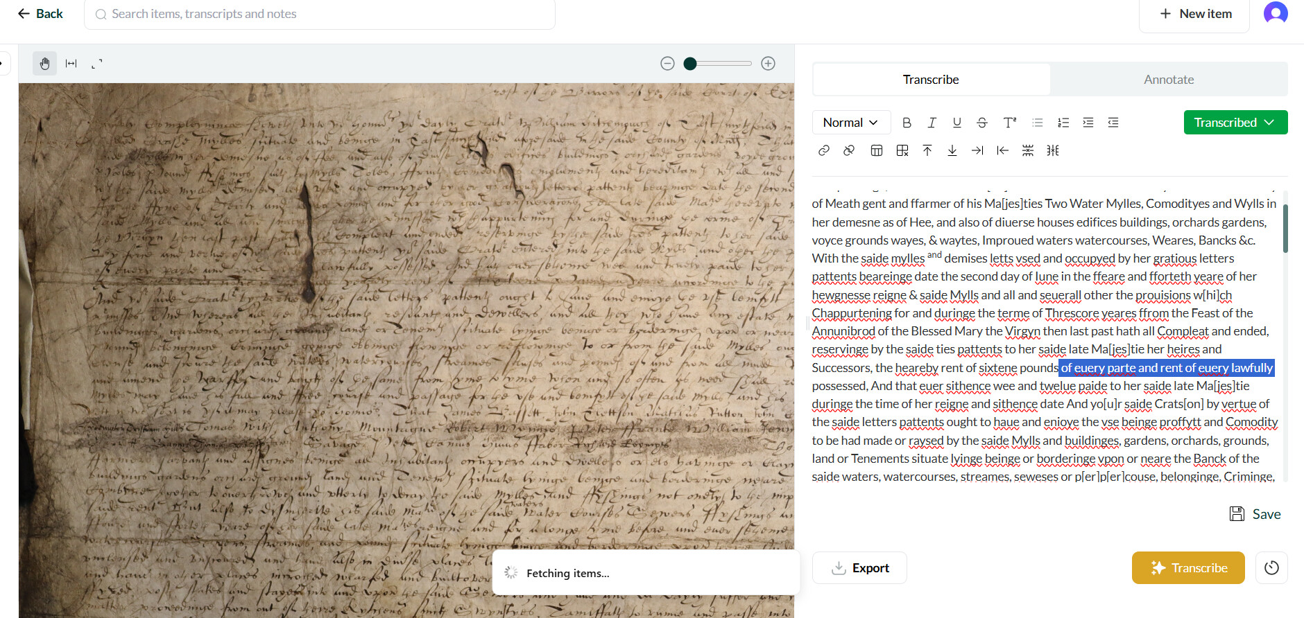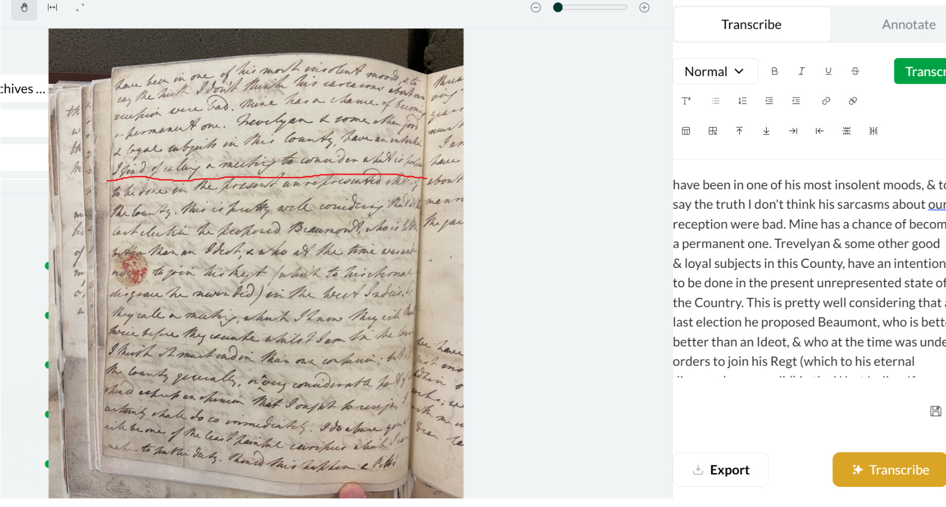 I’ve also had a few lines missed in transcriptions. As someone else mentioned, I think in my case this was due to the document quality and photo quality. There are a number of smudges and holes on the document which appear to have confused the model. The example here is an Exchequer bill in English and instead of transcribing the ‘By force and vertue’ line, it has skipped to ‘of euery parte’.