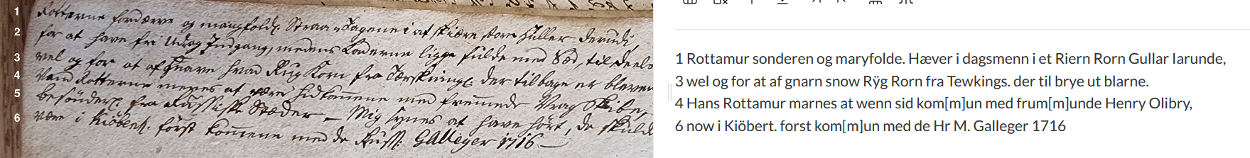 Just wanted to note that I’ve run into a similar issue in mid-18th C Norwegian. The lines are numbered, and of 6 lines Leo transcribed only 4.