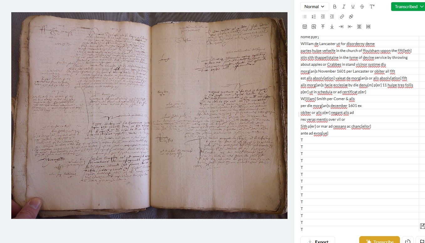 I think layout is perhaps the most important factor, coupled with the simple issue that these church court books are extremely difficult and annoying to read, even for an experienced paleographer. They are a mixture of highly abbreviated and formulaic Latin interspersed with English, all in messy secretary hands crammed into unorthodox layouts, with marginalia etc. Leo has had far greater success with 17th century English depositions - largely italic in a standard layout [1 and 3].