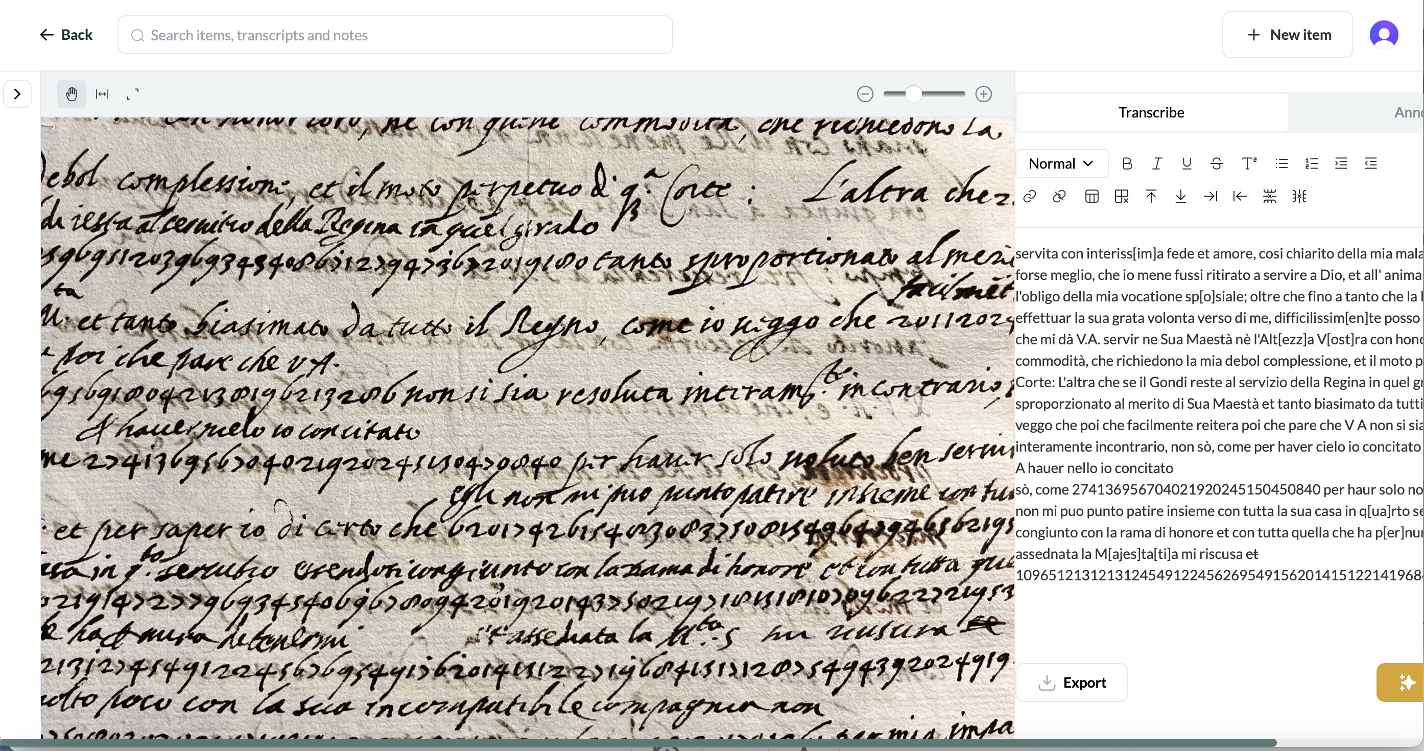 I’m having trouble seeing everything at once: the width of the screen doesn’t allow for the transcription and image to be seen all at once, even with the side menu closed. I have to scroll across to access the right side of the transcription, and then back for the left side of the image, unless I keep it unzoomed in and on the right side of the image section. Making the window smaller or larger doesn’t change it, the size just scales equally. And the image zoom doesn’t make a difference.